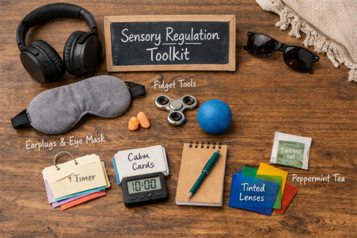 Over time I also slowly developed a sensory regulation toolkit — small practical things that helped my system calm down when everything felt too intense.