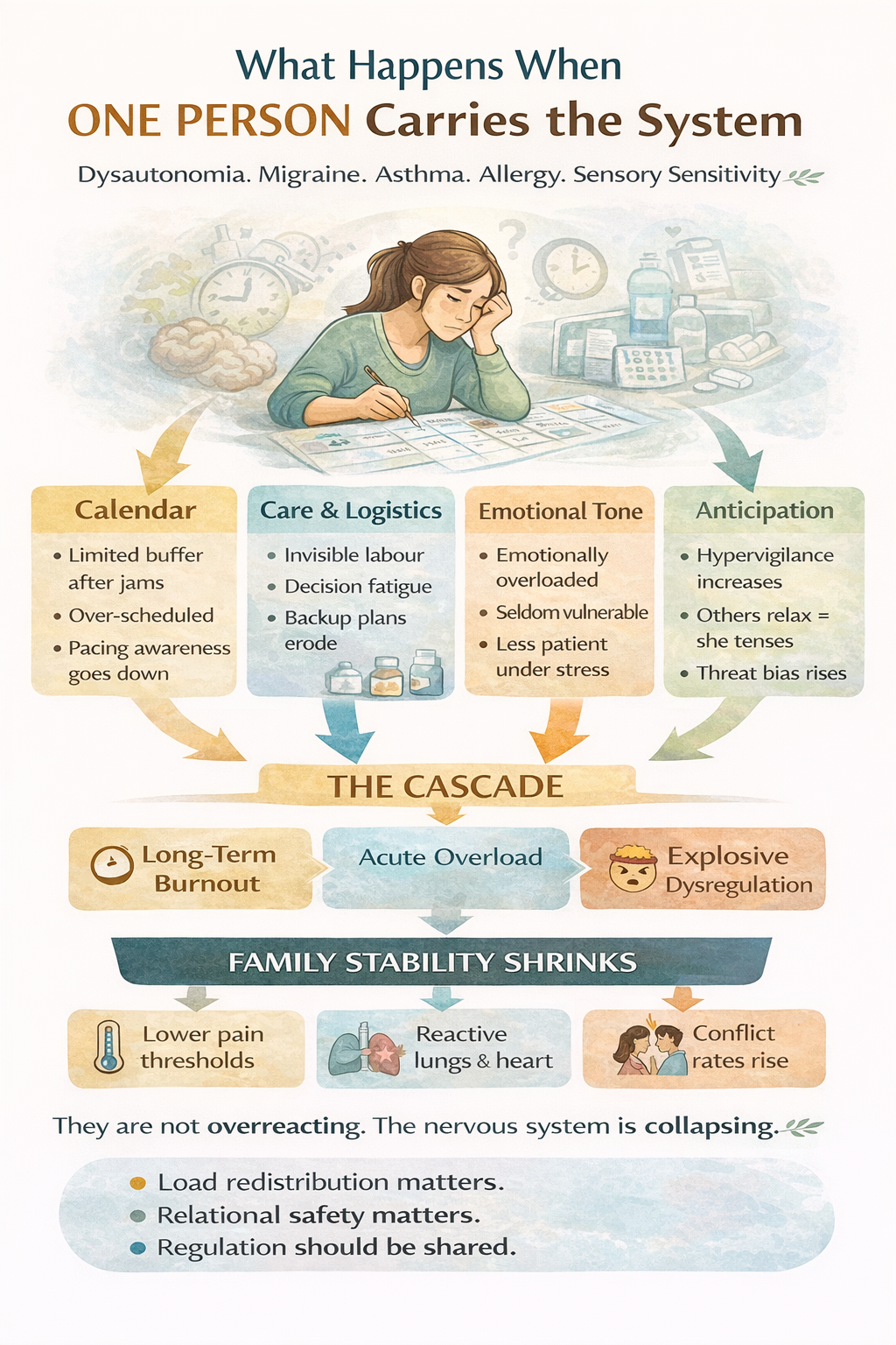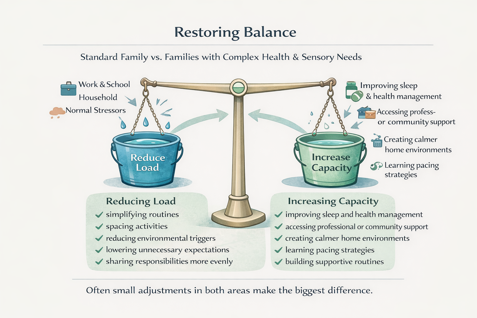 Illness, stress, burnout, or major life events can temporarily reduce how much a family can manage.